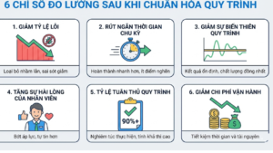 Việc chuẩn hóa quy trình chỉ là bước khởi đầu. Sau khi áp dụng, cần đo lường để biết nỗ lực thay đổi có hiệu quả hay không. Dưới đây là 6 chỉ số đo lường hiệu quả của chuẩn hóa quy trình